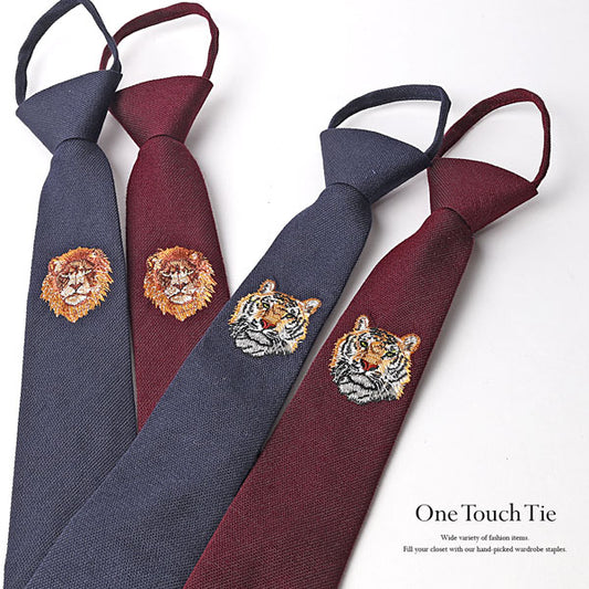 ワンタッチネクタイ 7cm ライオン トラ 虎 刺繍 刺しゅう ワンタッチネクタイ タイガー ライオン ネクタイ ( 虎 らいおん )30569