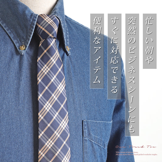 ワンタッチネクタイ 7cm ビジネス 仕事 ストライプ チェック 30446